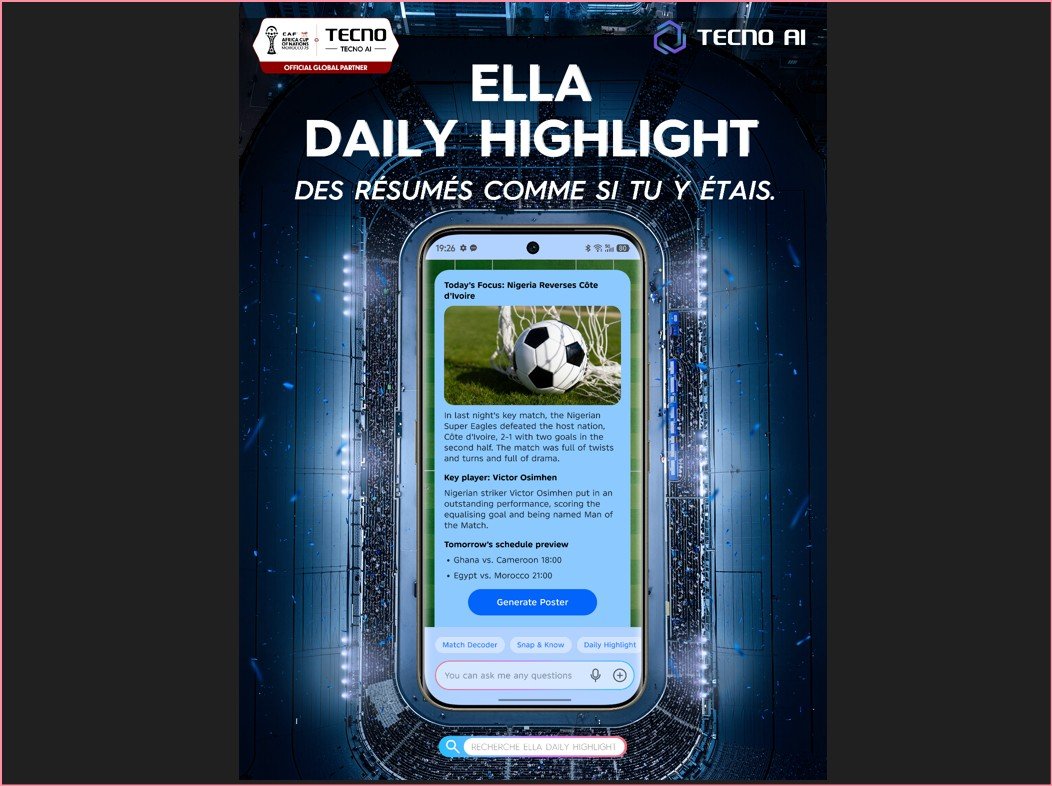 À l’approche de la Coupe d’Afrique des Nations 2025, TECNO présente une suite de fonctionnalités d’intelligence artificielle dédiées au football, pensées pour redéfinir l’expérience de millions de fans africains. Propulsées par le système propriétaire Ella AI, ces innovations illustrent l’évolution de la consommation du football à l’ère numérique — non seulement dans les stades et les salons, mais aussi à travers les écrans, les flux et les réactions instantanées qui dominent l’usage du smartphone sur le continent.