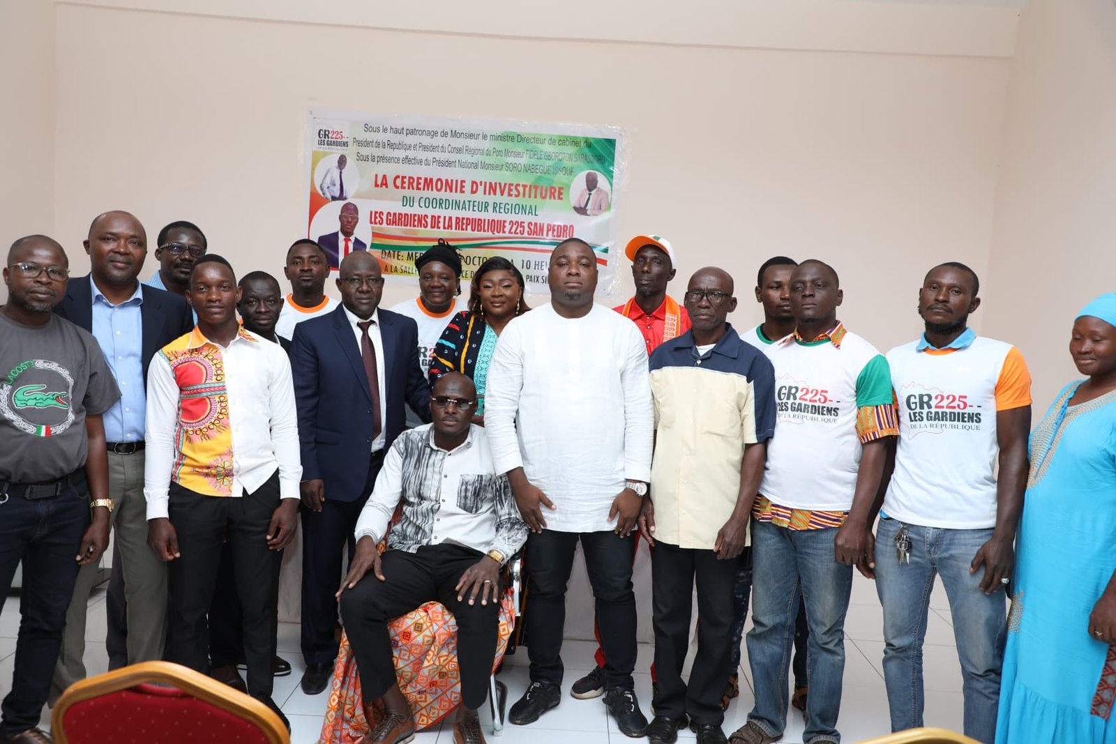 La dynamique du mouvement Les Gardiens de la République 225 (GR225) poursuit son déploiement à travers le pays. Après plusieurs régions, c’est à San-Pédro, capitale du Bas-Sassandra, que le mouvement a marqué une nouvelle étape avec l’investiture de Coulibaly Laciné comme coordonnateur régional, ce mercredi 8 octobre 2025, à la salle de conférences de l’Hôtel de la Paix.